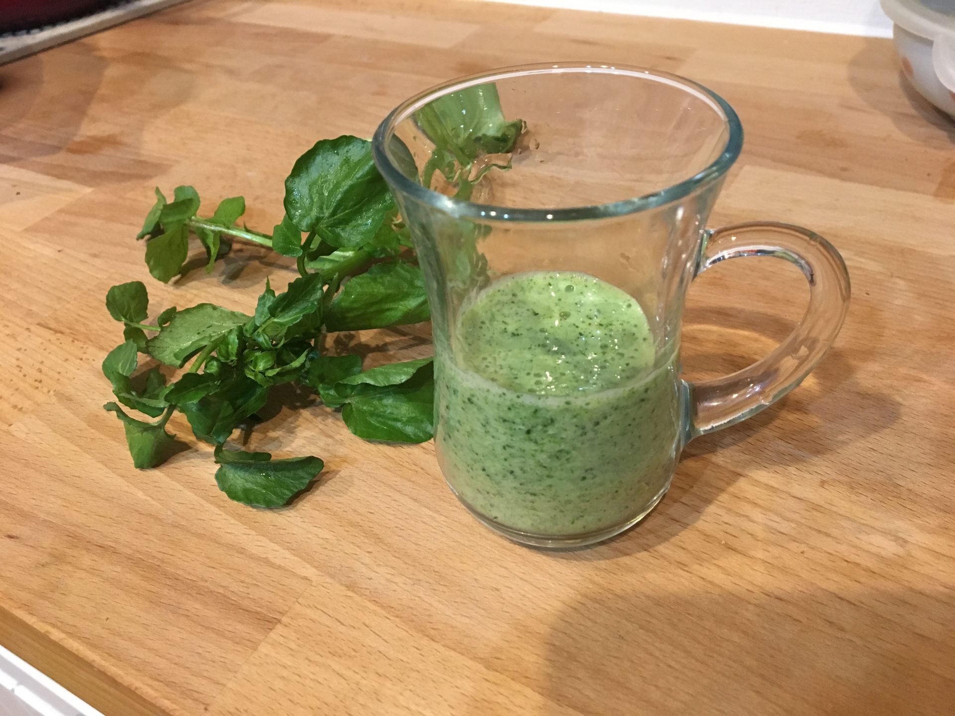 この間は、野草のクレソンを摘んできてバナナと一緒にジュースにしましたよ!