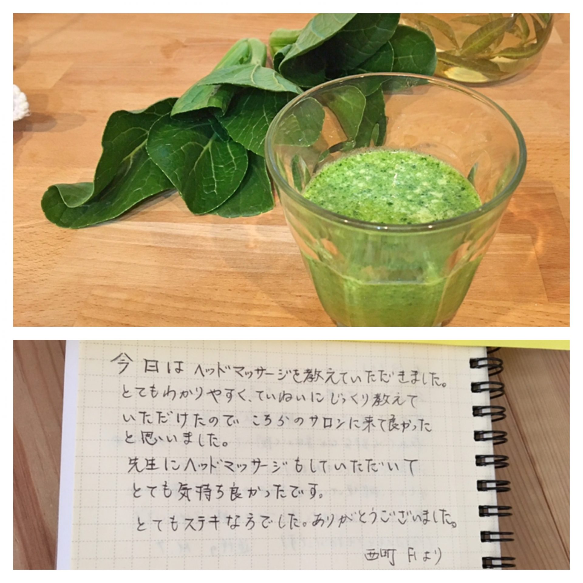 【今日はヘッドマッサージを教えていただきました。とてもわかりやすく、ていねいにじっくり教えていただけたので、こちらのサロンに来て良かったと思いました。